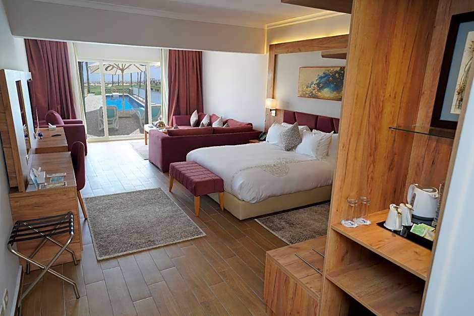 Welcome to Stella Beach Resort & Spa, an exquisite 5-star getaway located in the vibrant city of Hurghada, Egypt. Situated on Safaga Road, just 19,8mi from the city center, this beachfront resort provides the perfect backdrop for a truly unforgettable vacation.